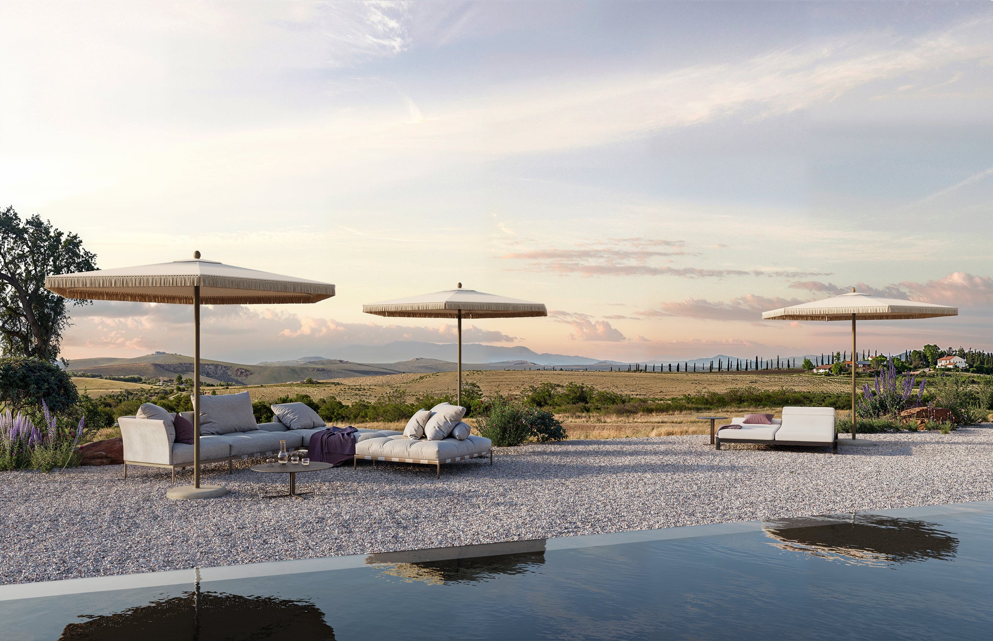 Bespannung Schirm: canvas (Kontrastnaht/Zierband 10 cm natural), lin (Kontrastnaht/Zierband 10 cm natural), terra (Kontrastnaht/Zierband 10 cm rosa)