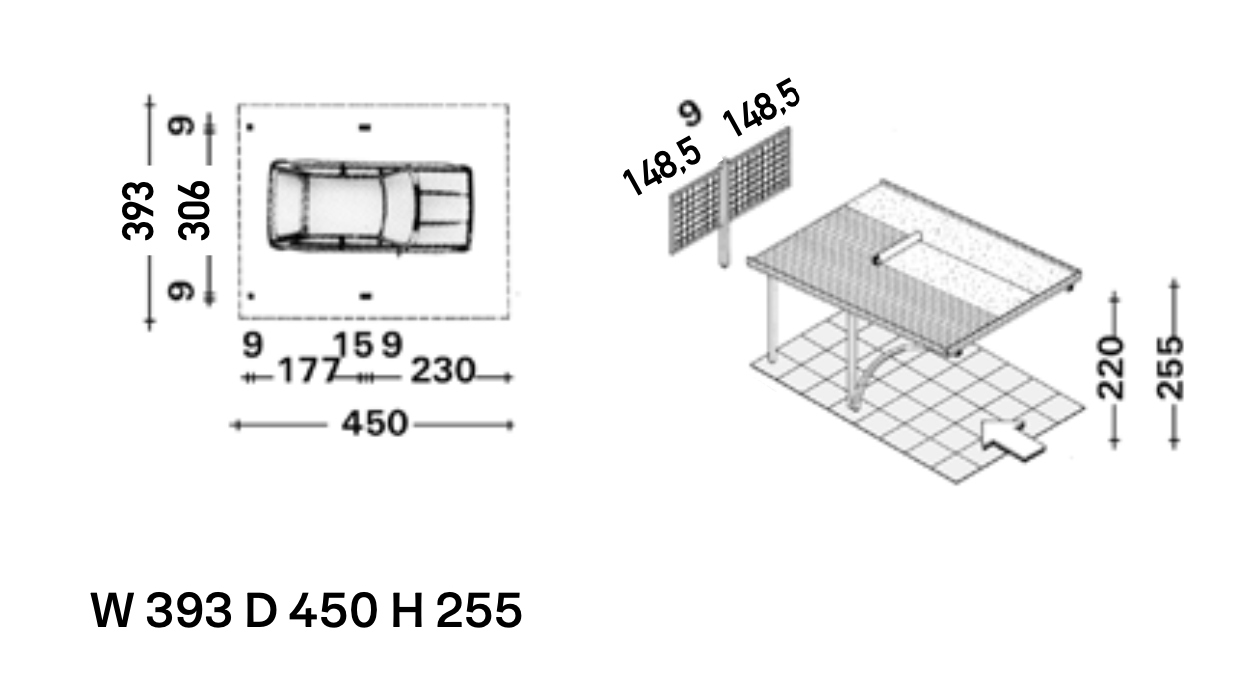 Mit dem Unopiu Covercar Carport treffen Funktionalität und Design aufeinander. Dieses aus robustem Kiefernholz gefertigte Carport schützt Ihr Fahrzeug vor den täglichen Witterungseinflüssen und bewahrt es vor Schäden durch Regen, Schnee und UV-Strahlen. Die modernen grünen Dachbahnen und das edle Holz fügen sich harmonisch in Ihre Gartengestaltung ein und bieten gleichzeitig eine langlebige Lösung für den Schutz Ihres Autos. Die Montage ist denkbar einfach und in kurzer Zeit zu bewerkstelligen. Wählen Sie zwischen zwei verfügbaren Größen und verleihen Sie Ihrem Außenbereich mit dem Unopiu Covercar Carport eine stilvolle und funktionale Ergänzung.