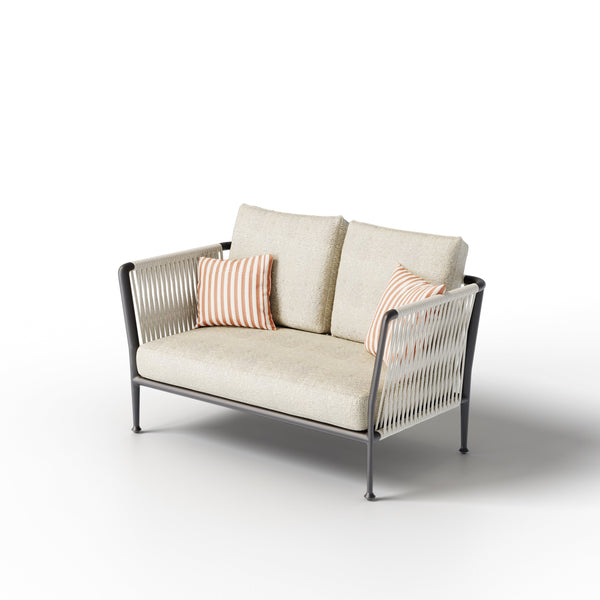 Erhältlich in den vier ansprechenden Oberflächen Graphit, Salbei, Syrah und Sand, bietet das Unopiu Sofa Treble vielfältige Gestaltungsmöglichkeiten. Die harmonischen Farben und die hochwertige Verarbeitung machen das Sofa zu einem Highlight in jeder Umgebung. Das stabile Aluminiumgestell garantiert Langlebigkeit und Beständigkeit gegenüber Witterungseinflüssen, während die Bespannung aus weiß meliertem Polypropylen-Seil dem Sofa eine moderne und gleichzeitig zeitlose Optik verleiht.