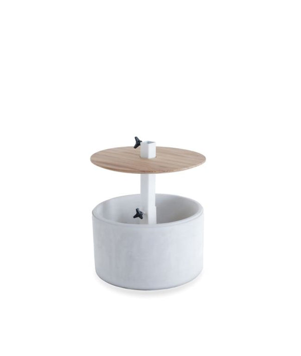 • · Schirmständer aus Beton mit Tisch aus Iroko-Holz