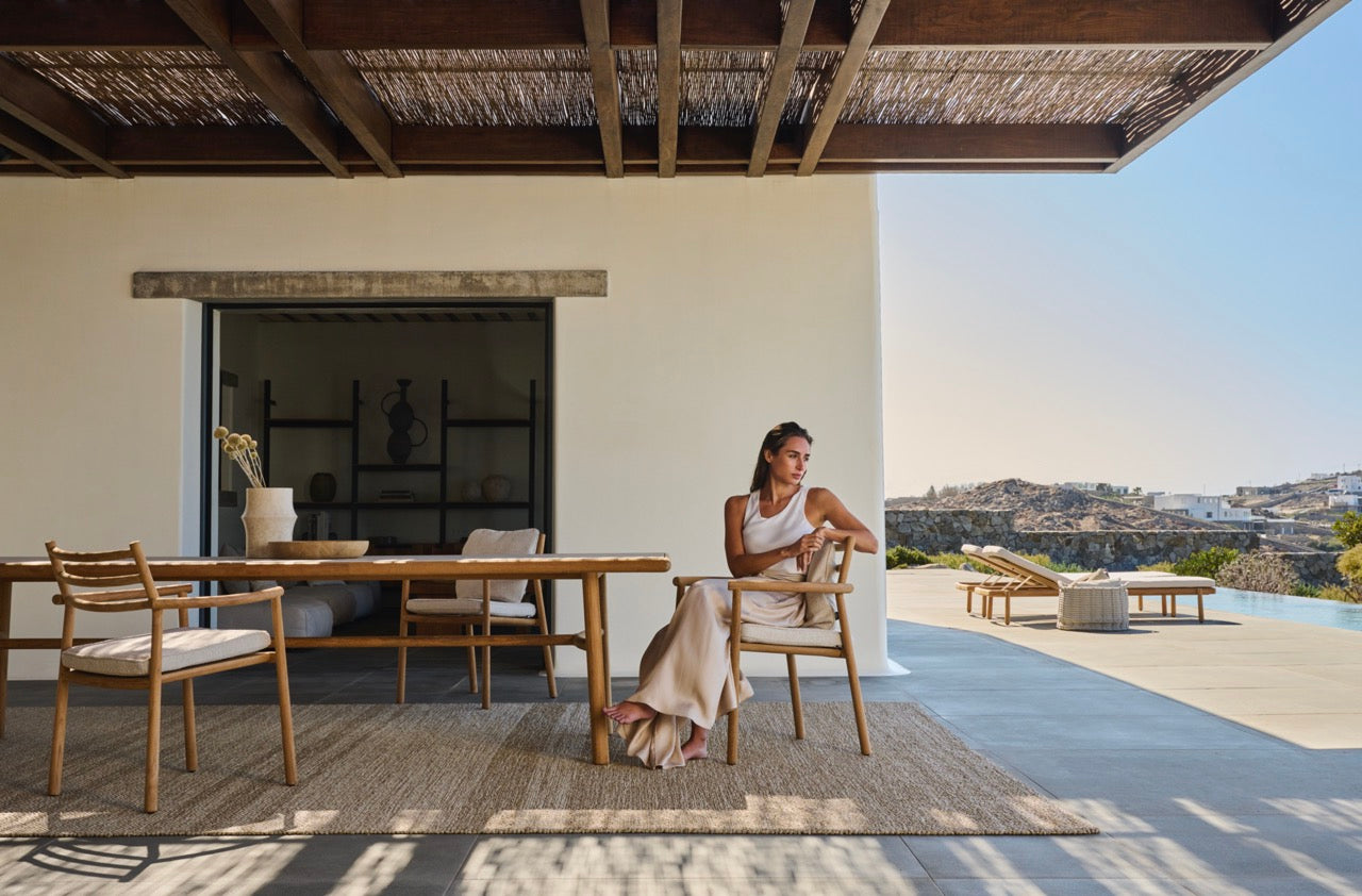 Geschwungene Linien wie Pinselstriche, präzise und ätherisch zugleich, die auch im japanischen Schriftsystem vorkommen, waren die Inspiration für die neue Ukiyo-Kollektion. Der niedrige Tisch Ukiyo ist der perfekte Begleiter für jeden Außenbereich. Verschiedene Optionen für die Tischplatte aus Teakholz oder Keramik machen diesen Artikel anpassungsfähig für jede Farbpalette.optionales Zubehör: Polsterauflage